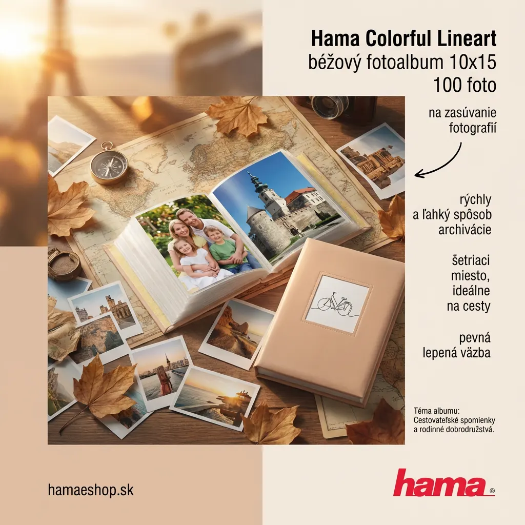 Fotoalbum Hama zo série "Colorful Lineart" v teplom béžovom (marhuľovom) odtieni je elegantnou voľbou pre všetkých, ktorí preferujú jemnosť a štýl. Hlavným prvkom dizajnu je minimalistická perokresba bicykla (line art), umiestnená v čistom bielom rámiku na prednej strane. Tento motív evokuje pokojné jazdy mestom, letné výlety a slobodu pohybu. Je to ideálny album pre zaznamenanie dovolenkových zážitkov, cyklovýletov alebo len príjemných chvíľ s priateľmi.