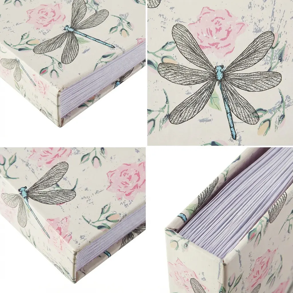 Fotoalbum Hama Poetic kombinuje vážky a ruže - dva symbolické a romantické prírodné motívy. Vážky sú v mnohých kultúrach symbolom transformácie, ľahkosti, zmeny a prítomného okamihu - ich priesvitné krídla a elegantný pohyb sú ikonické. Ruže sú univerzálnym symbolom lásky, krásy a romantiky - staroružová farba evokuje nežnosť a vintage estetiku. Vintage botanické ilustrácie pripomínajú staré botanické atlasy, herbáre alebo vedecké kresby z 19. storočia. Shabby chic štýl s opotrebovanými textúrami, odtlačkami a vintage efektmi vytvára nostalgickú, romantickú atmosféru. Krémové pozadie evokuje starý papier, pergamen alebo vintage textílie. Album je ideálny pre svadobné fotografie, romantické spomienky, vintage udalosti, záhradné oslavy alebo ako darček pre milovníkov romantického a poetického dizajnu.
