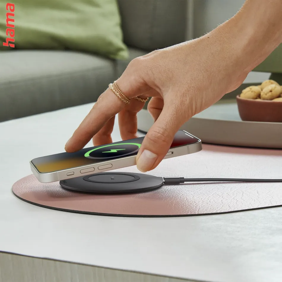 Hama bezdrôtová nabíjačka Qi s výkonom až 15 W umožňuje pohodlné a rýchle nabíjanie všetkých zariadení podporujúcich Qi štandard. Stačí položiť smartfón či slúchadlá na pogumovanú plochu a nabíjanie sa spustí automaticky – bez nutnosti manipulovať s káblom.