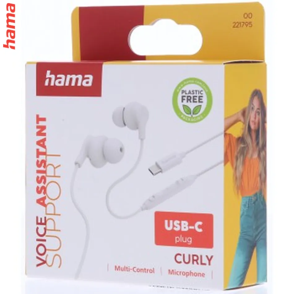 HAMA In-Ear Stereo EP Curly white sú moderné in-ear slúchadlá so širokým využitím – ideálne pre smartfóny, tablety aj notebooky s USB-C konektorom. Elegantné biele prevedenie skvele doplní váš štýl a zaručí čistý a jasný posluch hudby aj hovorov.