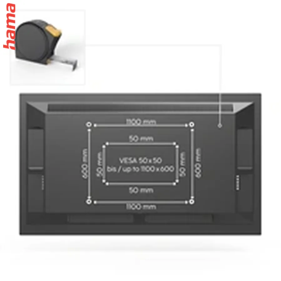 Tento univerzálny držiak Hama ponúka maximálnu bezpečnosť a flexibilitu pre veľké televízory – ideálny výber pre náročných užívateľov, ktorí chcú mať obrazovku na stene presne tak, ako im vyhovuje.