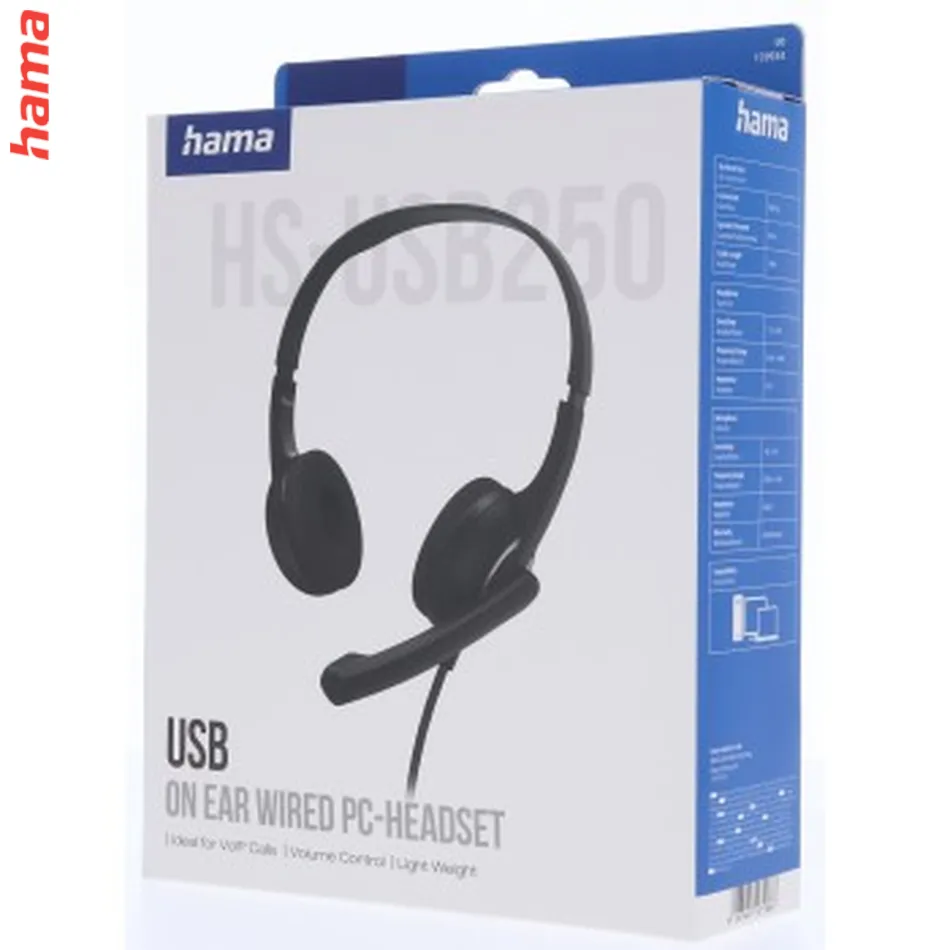 Hama HS-USB250 V2 je pohodlný stereo headset pre každodenné hovory, online komunikáciu i dlhodobú kancelársku prácu. Polstrované mušle a mesh hlavový oblúk z mäkkého, priedušného materiálu zaručujú komfort po celý deň. Pripojenie k počítaču je jednoduché vďaka USB-A konektoru a dlhému dvojmetrovému káblu, ktorý ponúka viac voľnosti pohybu. Flexibilné rameno mikrofónu umožňuje optimálne umiestnenie a tlačidlo MUTE na kábli poskytuje rýchlu kontrolu nad prenosom zvuku. Ovládanie hlasitosti je priamo na kábli, jednostranné vedenie zabraňuje zamotaniu.