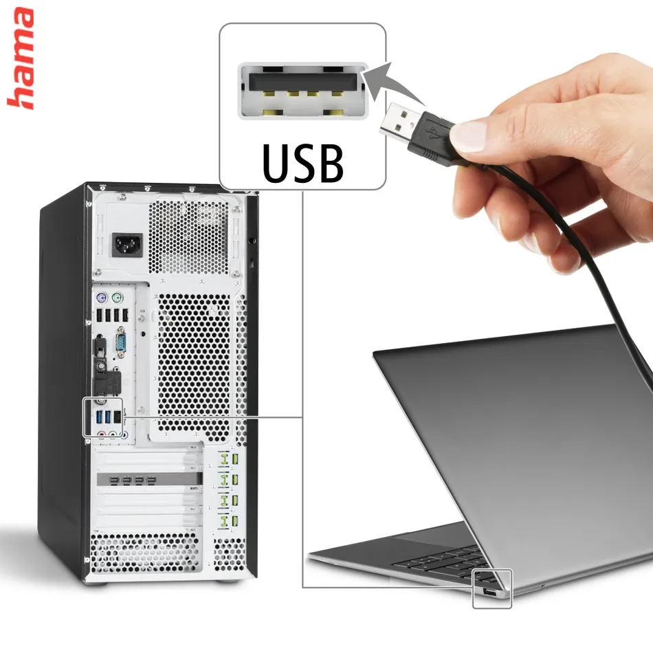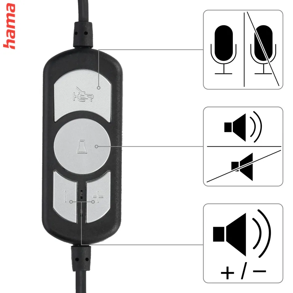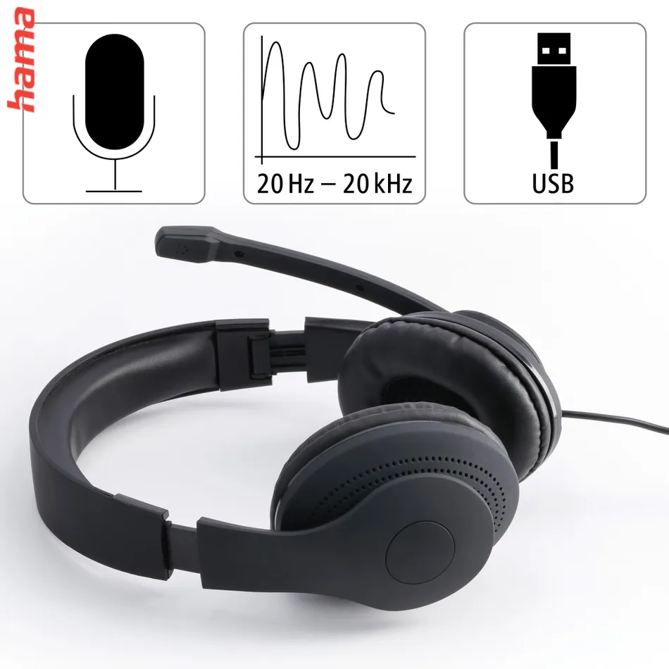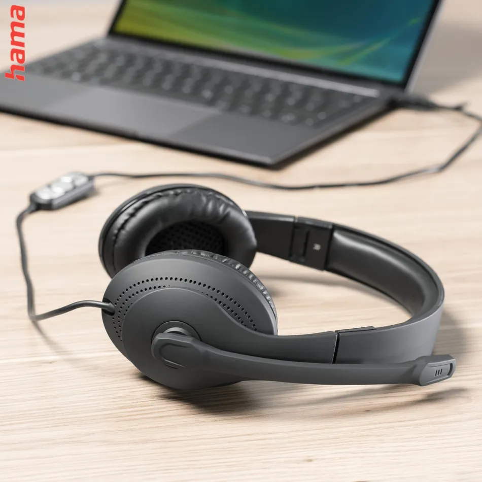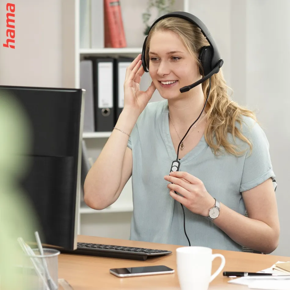 Hama HS-USB300 je praktický stereo headset určený na každodennú prácu v kancelárii, online komunikáciu aj vzdialené vzdelávanie. Pripojenie cez USB-A zabezpečuje stabilné spojenie a jednoduchú kompatibilitu s Windows zariadeniami. Polstrované mušle a hlavový oblúk poskytujú komfort aj pri dlhodobom nosení. Rameno mikrofónu je flexibilné a umožňuje jednoduché vertikálne nastavenie. Hlasitosť môžete meniť priamo na kábli a vďaka jednostrannému vedeniu kábla sa netreba báť zamotania.
