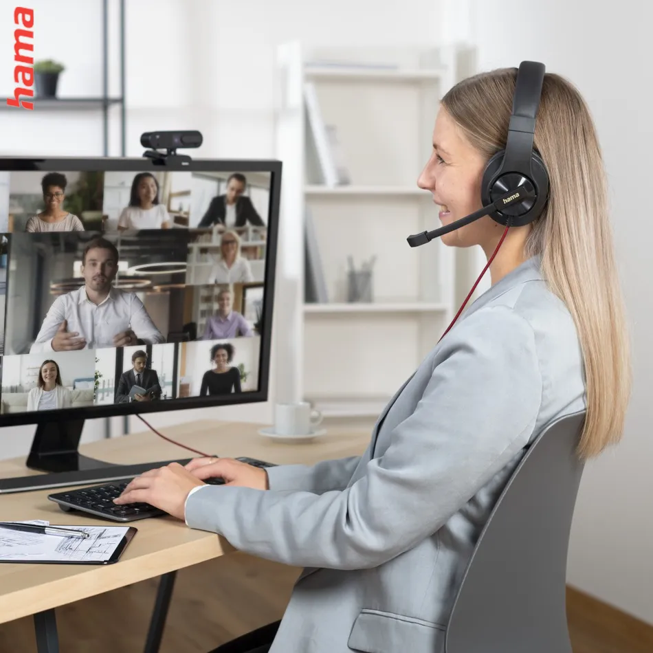Hama HS-USB400 V2 je odolný a komfortný stereo headset určený pre náročné kancelárske použitie i dlhé hovory. Pripojenie cez USB-A zaručuje jednoduchú kompatibilitu s väčšinou počítačov so systémom Windows. Kovové komponenty v hlavovom oblúku dodávajú konštrukcii potrebnú pevnosť a stabilitu, zatiaľ čo priedušné, mäkké mesh polstrovanie zabezpečí pohodlie aj pri celodennom nosení. Mikrofón s flexibilným ramenom umožňuje presné nastavenie, a na kábli nájdete aj praktické tlačidlo MUTE na vypnutie zvuku. Hlasitosť jednoducho nastavíte priamo na kábli, pričom jednostranné vedenie káblu zvyšuje komfort a minimalizuje zamotávanie.