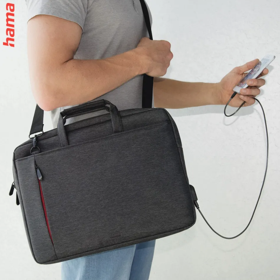 Úvod » TAŠKY NA NOTEBOOKY » Hama taška na notebook s integrovaným USB káblom Manchester, 15,6" (40 cm), čierna