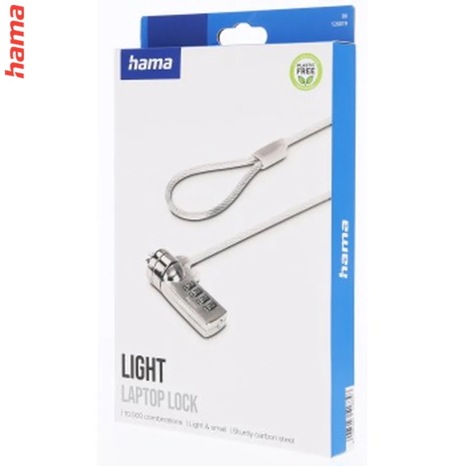 Zámka Hama Light chráni váš notebook alebo iné zariadenia so štandardizovaným slotom proti krádeži – a pritom váži len 110 gramov! Jej miniatúrna konštrukcia je ideálna na použitie v kancelárii, na cestách aj v škole. Uzamykanie zabezpečuje 4-miestny číselný kód, ktorý ponúka až 10 000 možných kombinácií. Zabezpečovacie lanko z odolnej uhlíkovej ocele (priemer 3,5 mm, dĺžka 180 cm) má plastový poťah proti poškriabaniu povrchov. Zámku ľahko a rýchlo pripevníte aj k pevnému predmetu, napríklad k stolu alebo polici.