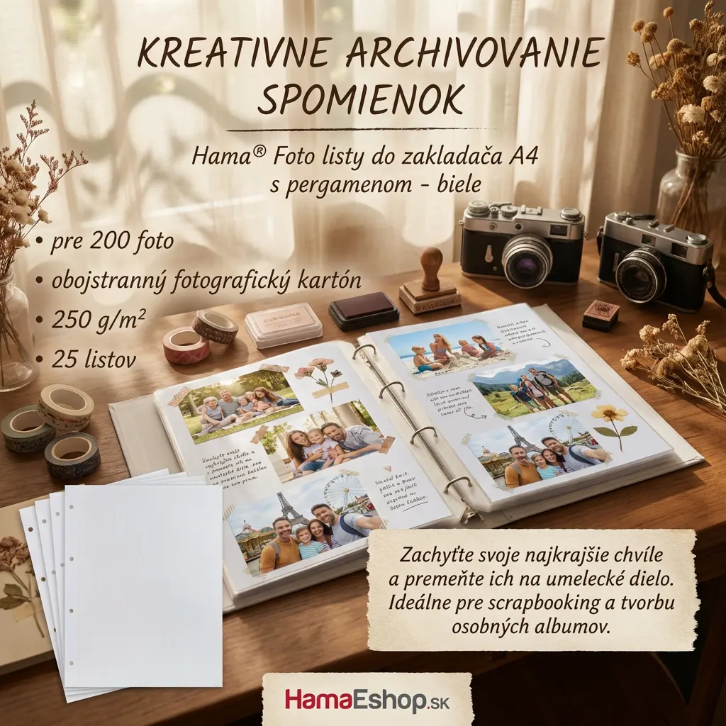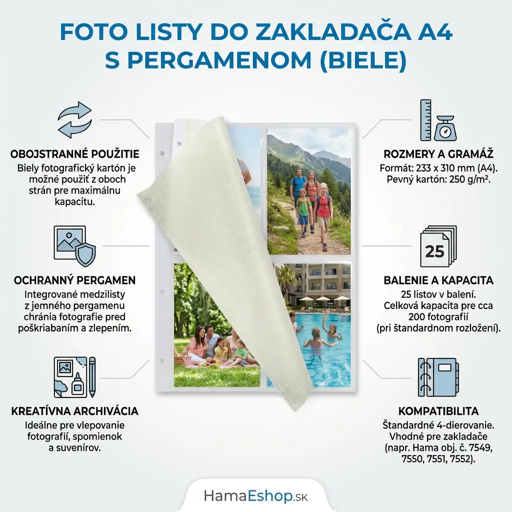 Úvod » FOTOALBUMY » Foto listy do zakladača A4 s pergamenom pre 200 foto biele