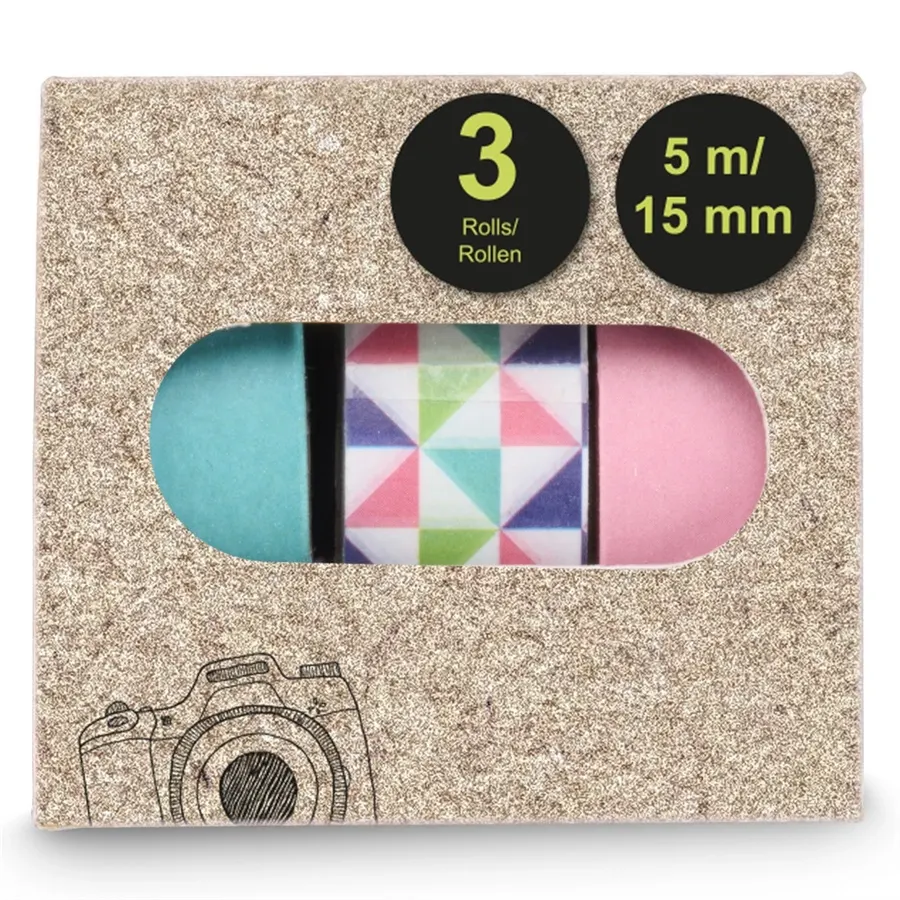 Druhá sada dekoračných pások Hama (washi pások) prináša do vašej kreatívnej výbavy svieži, moderný dizajn. Tento set je charakteristický kombináciou jemných pastelových tónov a dynamických tvarov. Nájdete tu upokojujúcu tyrkysovú, sladkú ružovú a výraznú pásku s geometrickým vzorom trojuholníkov, ktorá prepája farby celého setu. Je to ideálna voľba pre tých, ktorí chcú svojim projektom dodať štruktúru a farbu zároveň.