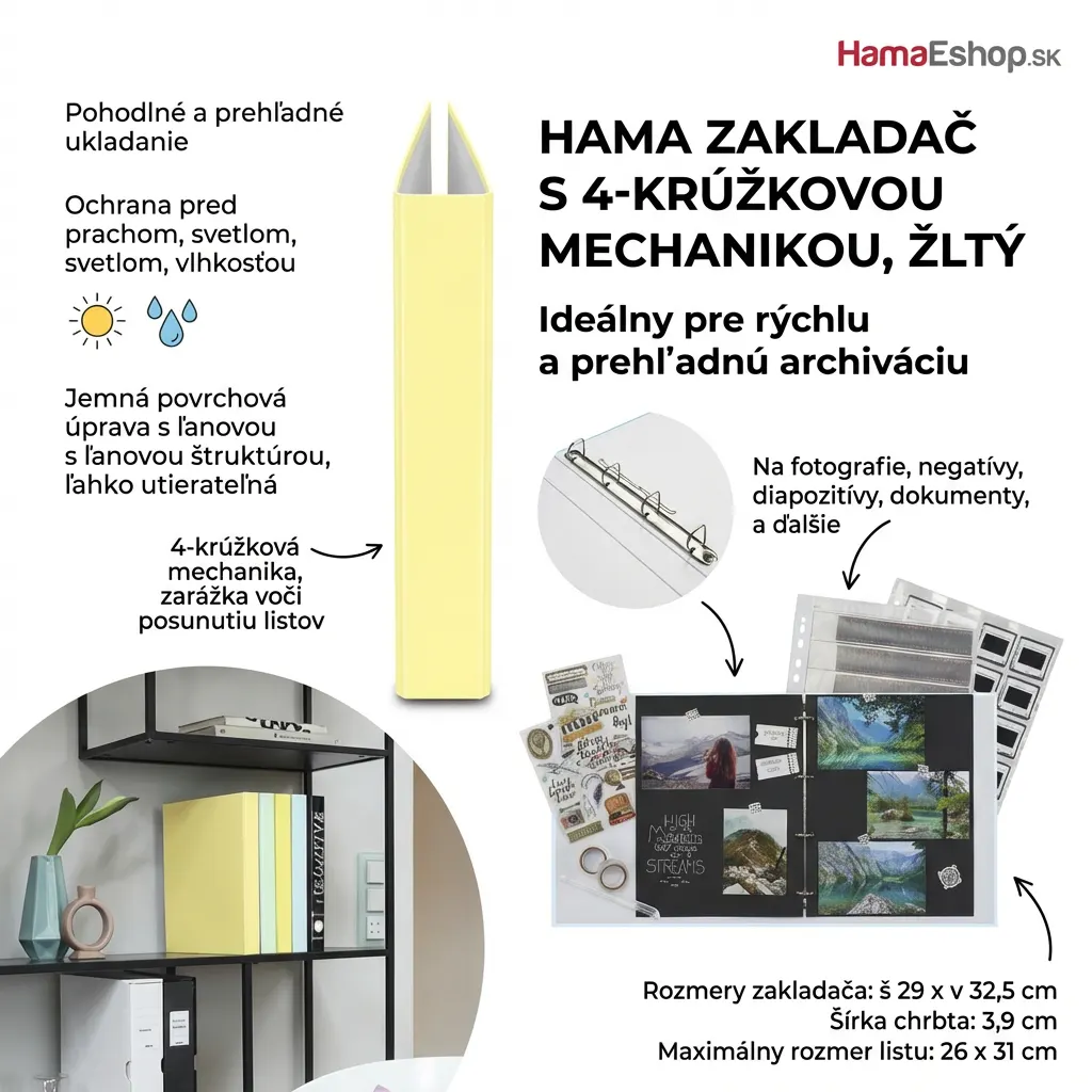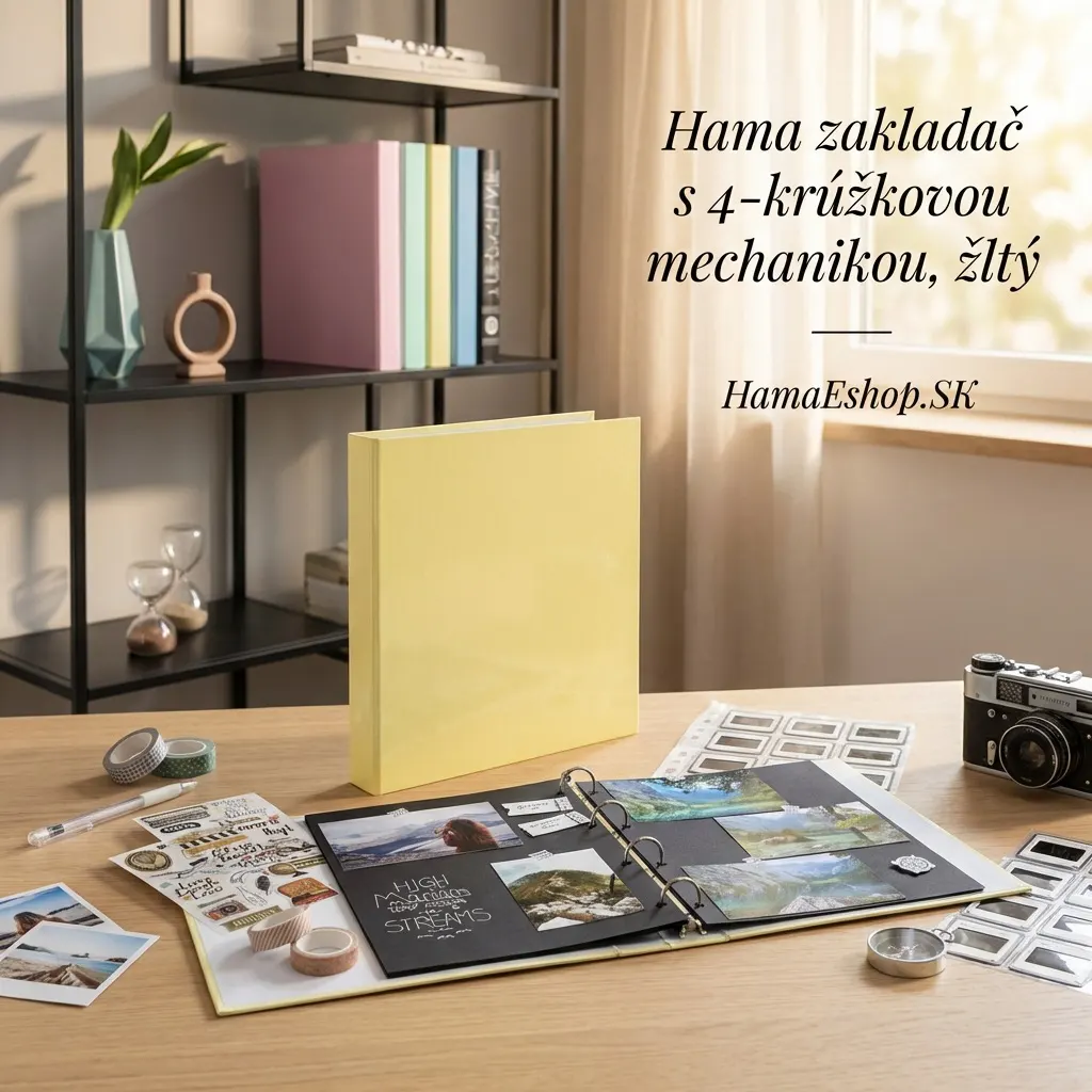 Úvod » FOTOALBUMY » Hama univerzálny krúžkový zakladač na fotky - Pastelová žltá (4-krúžkový)